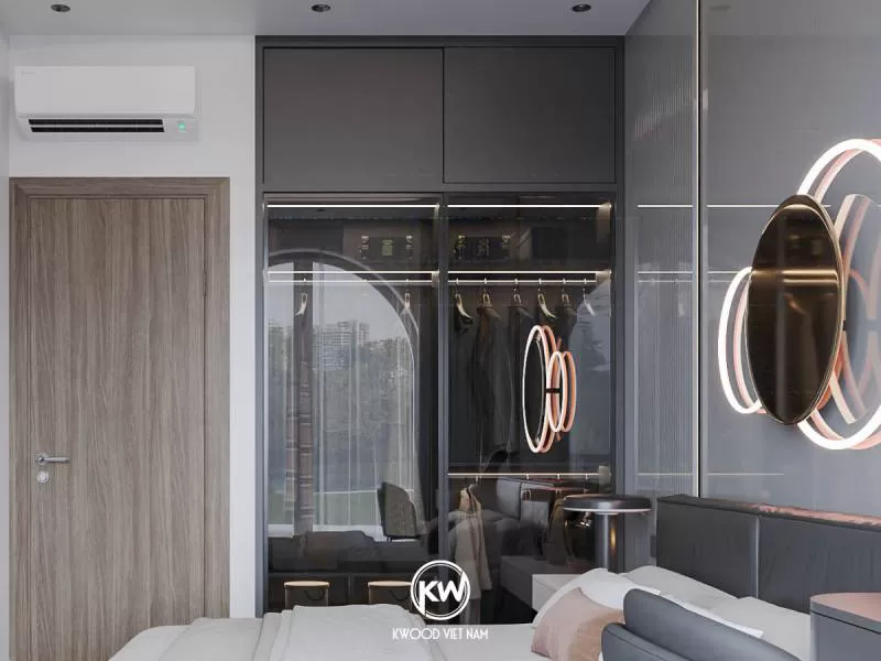 Sản phẩm tủ quần áo cánh kính cửa lùa hiện đại - TQA62 của Kwood Việt Nam với thiết kế kịch trần đi kèm cửa lùa giúp tối ưu diện tích cho phòng ngủ.