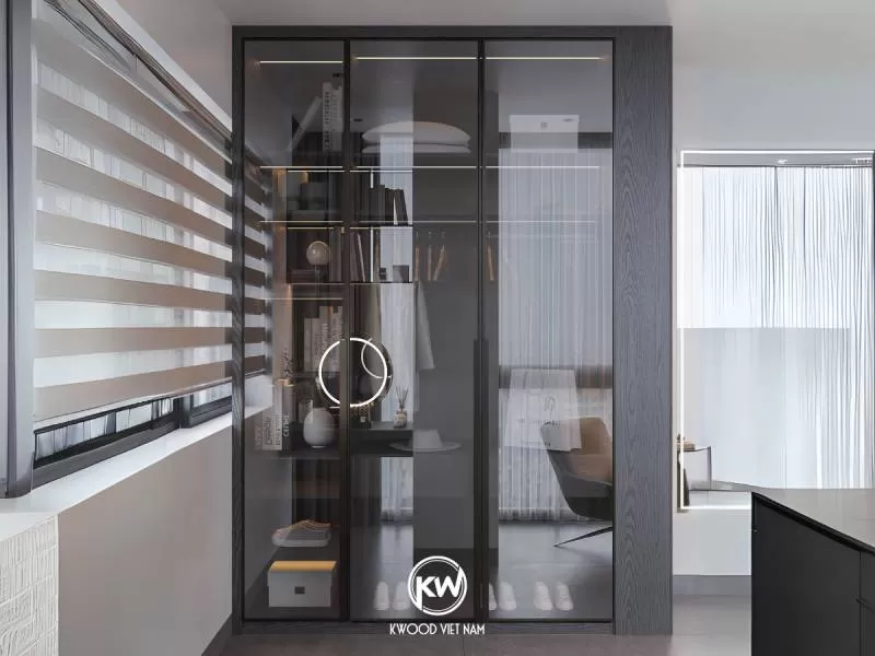 Sản phẩm tủ quần áo cánh kính cường lực sang trọng - TQA56 tại Kwood Việt Nam với thiết kế hiện đại phù hợp cho những không gian mang phong cách hiện đại, luxury