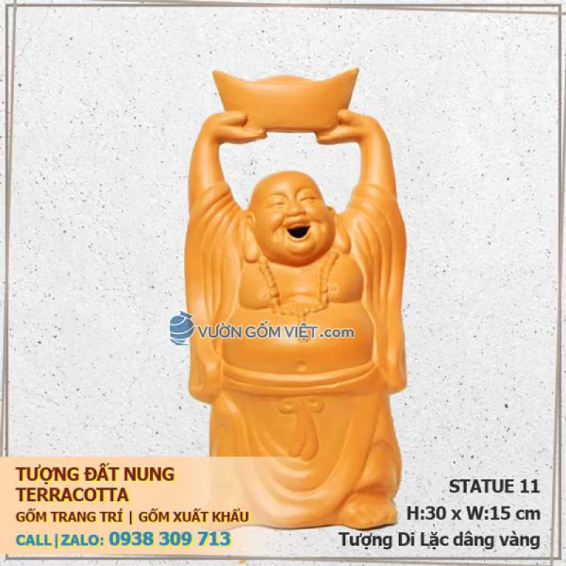 Tượng Di Lặc dâng vàng 11 gốm đất nung trang trí Terracotta