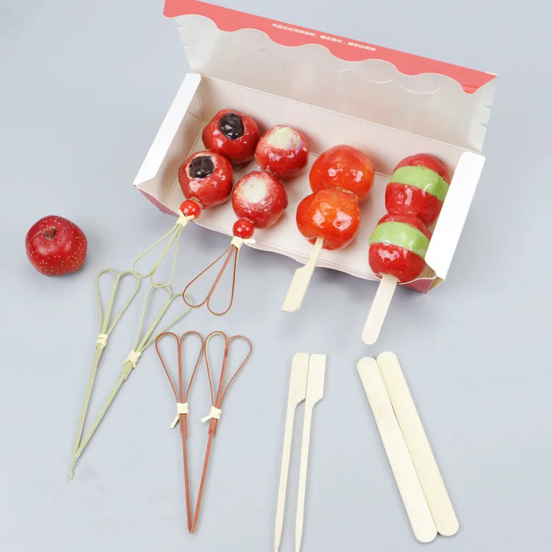 Eco Friendly Bamboo Knot Skewers Looped Knot Skewer Fruit Pick Cocktail Pciks Hamburg Skewer