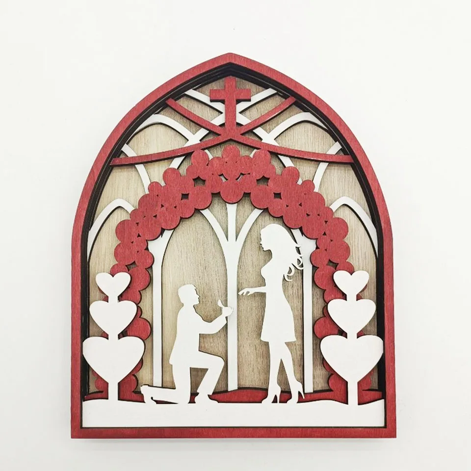New Three-Dimensional Valentine's Day Romantic Crafts Wooden Handicraft Wooden Ornaments