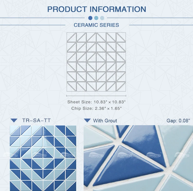 Wholesale Bathroom Wall Backsplash Swimming Pool Blue Tone Glazed Kiln Geometric Custom Decorative Ceramic Triangle Tile