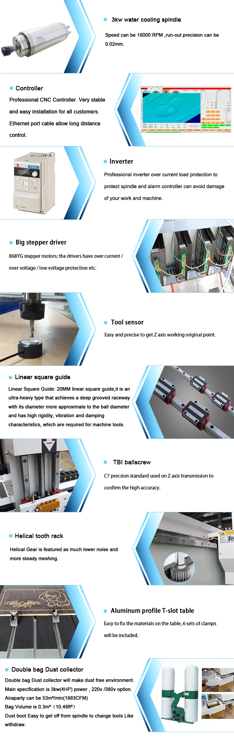 | Spindle | 3kw water cooling spindle(24000RPM) |
